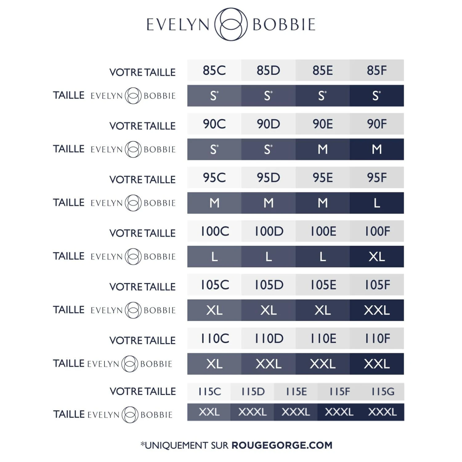 Les soutiens-gorge Evelyn & Bobbie sont sans armatures, légers et s’adaptent à toutes les formes de poitrines dès leur première utilisation. Conçus à partir de matières très douces, ils bénéficient de la technologie EB Core, un brevet dont les caractéristiques sont basées sur les superpositions de couches de matières, en remplacement des armatures rigides traditionnelles, pour un effet maintien 3D et une adaptation à la morphologie de chacune. Les modèles offrent un dos échancré, avec une attache dos de 4 agrafes permettant ainsi une liberté totale de mouvement du corps ainsi que des coutures invisibles pensées pour limiter tout inconfort. Existe jusqu’au bonnet G. En exclusivité chez RougeGorge Lingerie.