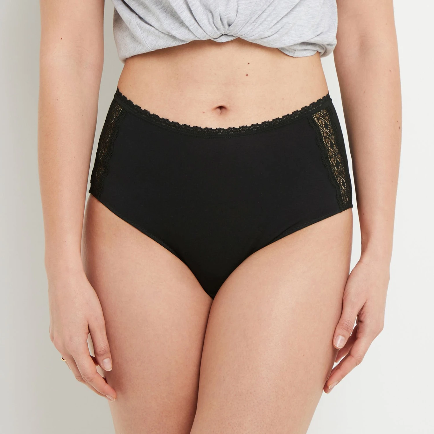 Dentelle: 44% POLYAMIDE RECYCLE 40% POLYAMIDE 16% ELASTHANNE Fond interieur: 100% COTON BIOLOGIQUE Microfibre: 70% VISCOSE 23% POLYESTER 7% ELASTHANNE