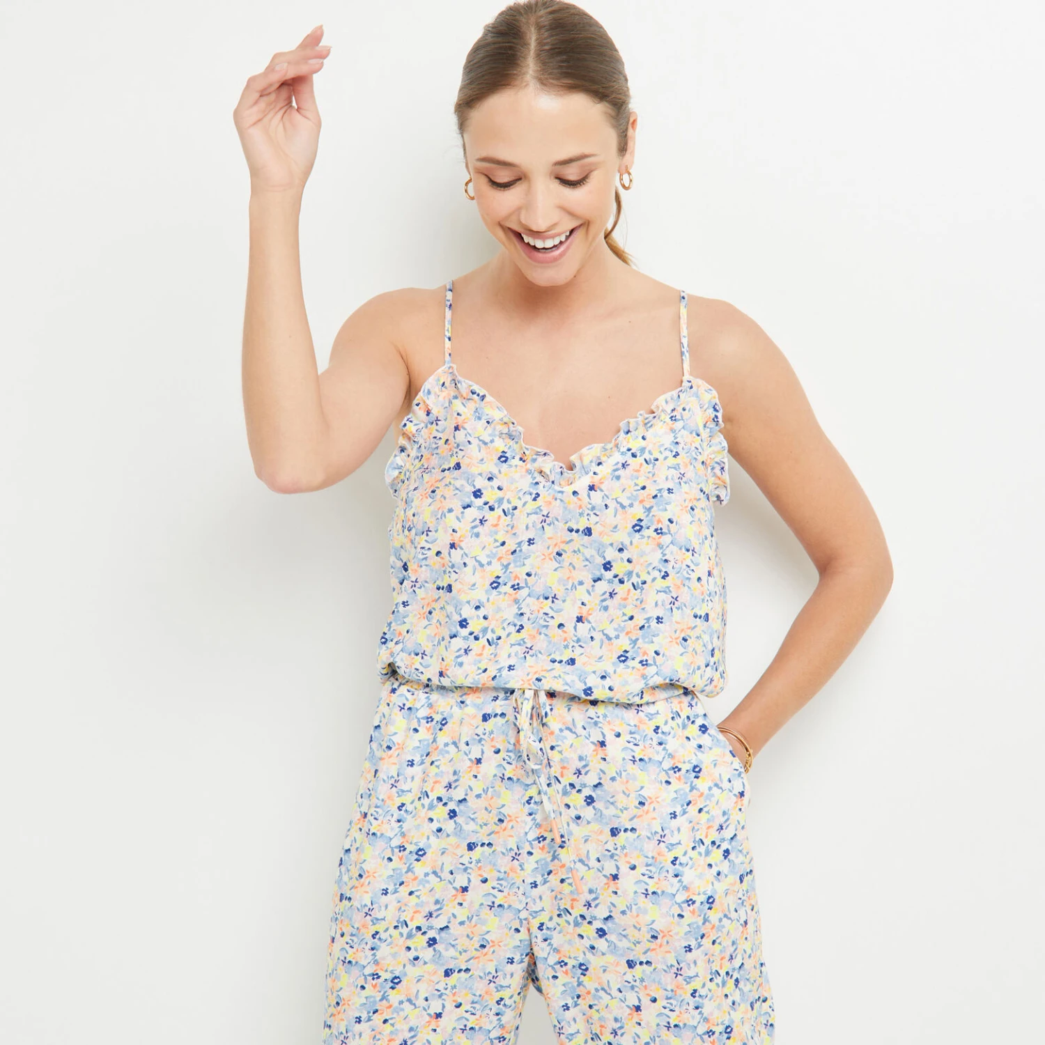 « L’imprimé de la ligne de jour Blabla fleurit la collection de nuit BEACH comme des touches aquarellées qui se posent sur une très belle étoffe douce et légère. Un esprit printanier et artistique irrésistible pour votre nuisette, pyjama ou pyjashort de saison. »
