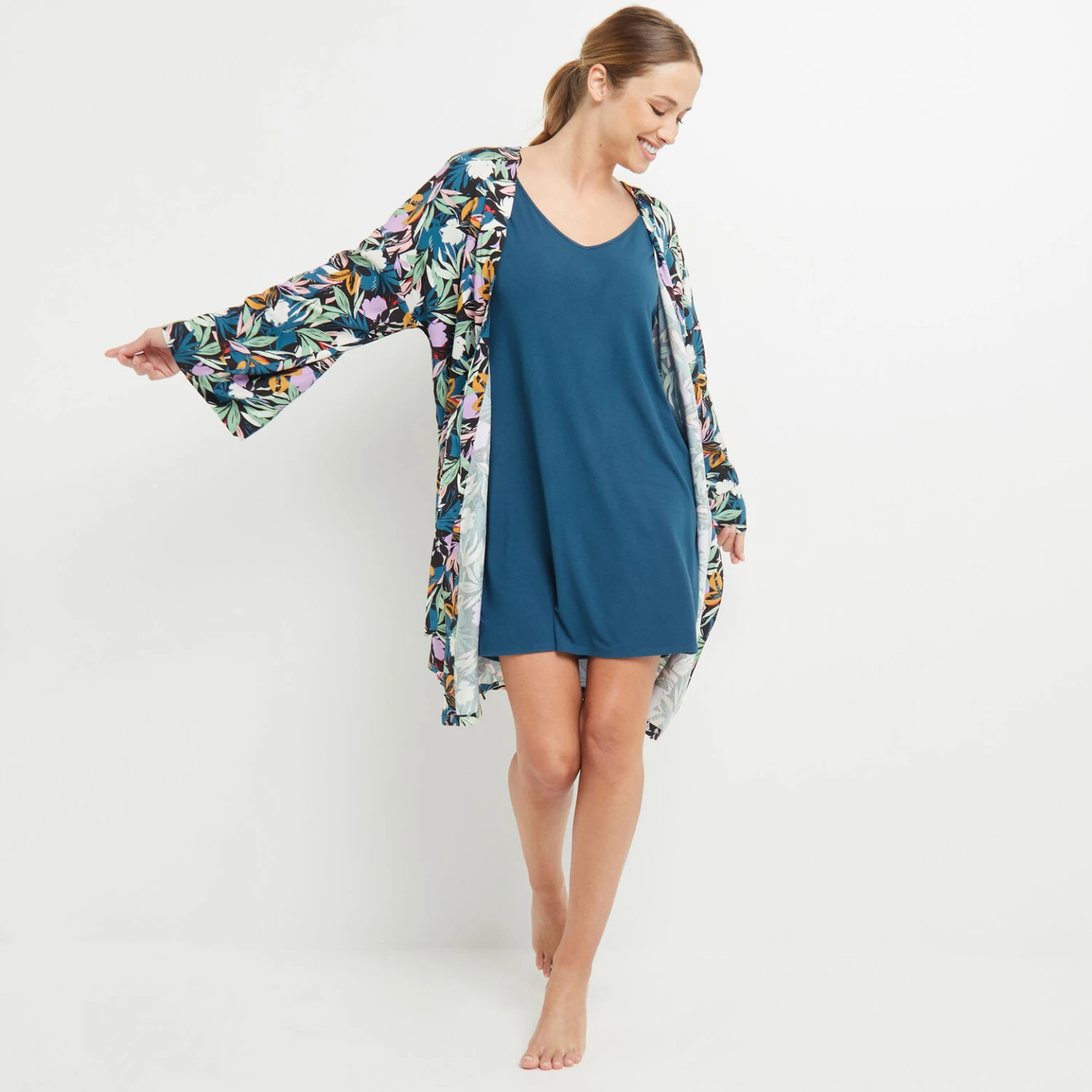 « Pour les amoureuses d’un monde plus doux, plus fleuri, plus romantique… BECKIE sublime vos nuits d’une matière très délicate et joyeusement imprimée : la viscose ecovero comparable à la soie, respirante et conçue à partir de fibres de bois issue des forêts certifiées FSC ou PEFC. »