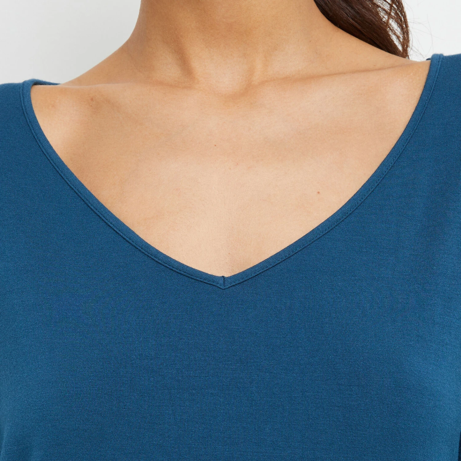 Plongez dans un cocon de bien-être avec le haut de pyjama BAMBOU. Sa teinte bleu pétrole profonde et sa texture ultra-fluide transforment vos moments de repos en une véritable parenthèse de douceur et de sérénité.