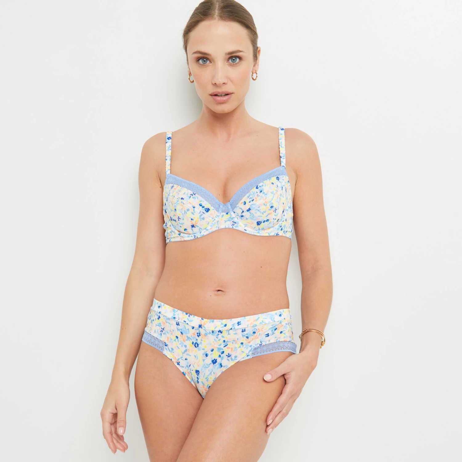 Dentelle: 86% POLYAMIDE 14% ELASTHANNE Fond interieur: 100% COTON BIOLOGIQUE Mousseline: 84% POLYESTER 16% ELASTHANNE