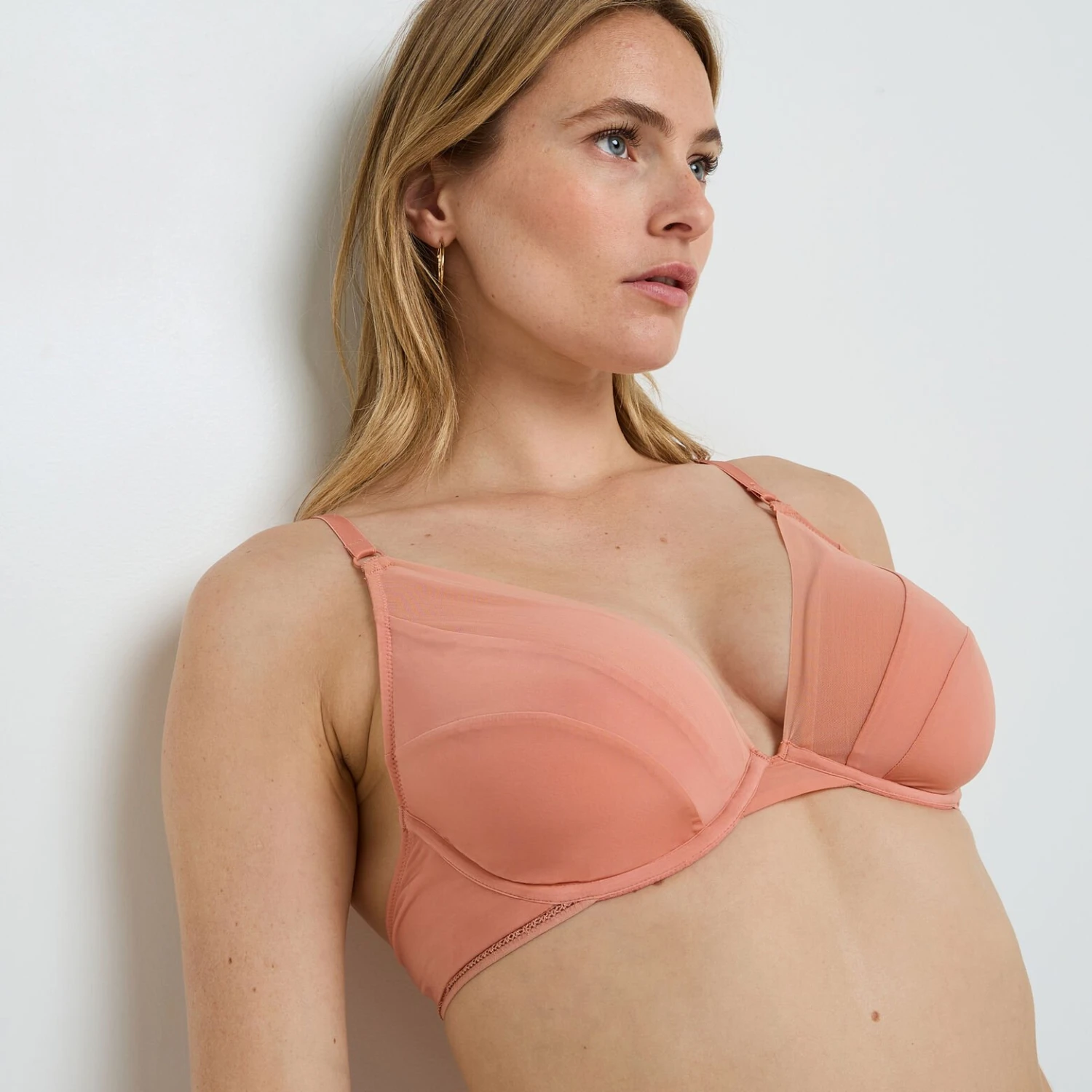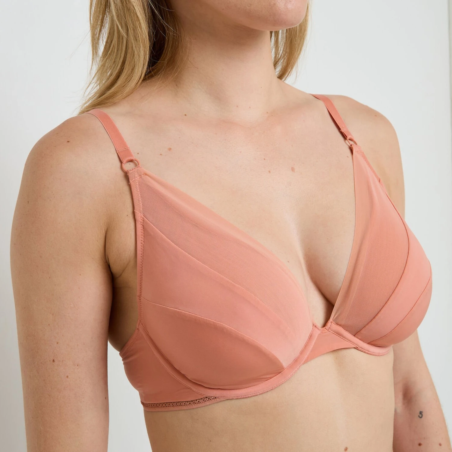 Le modèle GINNY se pare d’un coloris rose pétale poudré ultra-féminin. Conçu dans un mélange raffiné de microfibre soyeuse et de tulle léger, ce soutien-gorge offre un jeu de matières élégant et moderne qui souligne naturellement votre silhouette tout en restant invisible sous vos vêtements.