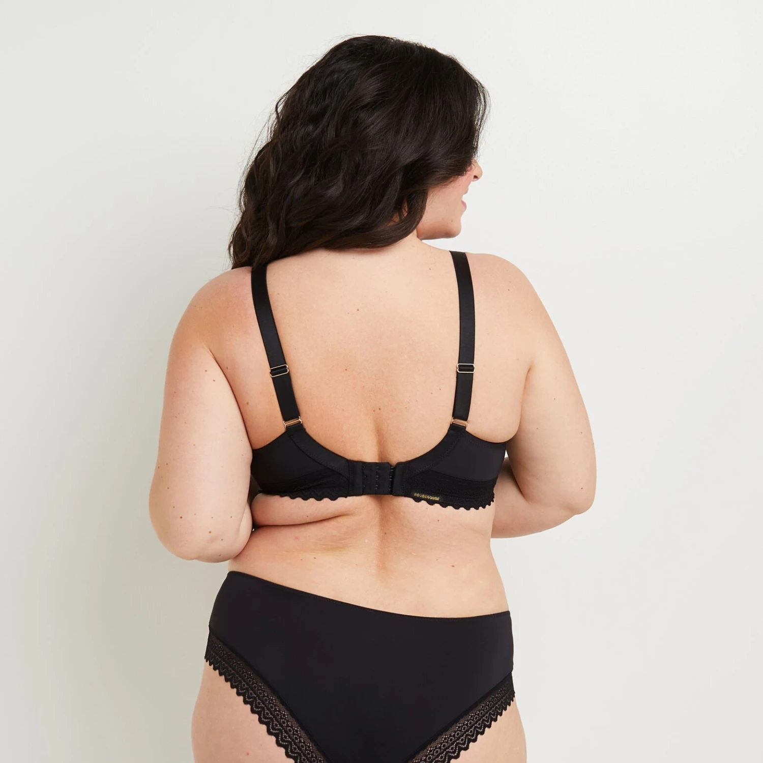 Ce modèle arbore un coloris noir profond intemporel. Le décolleté est rehaussé d’une dentelle festonnée raffinée, que l’on retrouve également sur le dos cheminée pour une touche de féminité sous tous les angles. Un élégant bijou fantaisie vient illuminer l’entre-seins, apportant un détail précieux à cette pièce de lingerie indispensable.