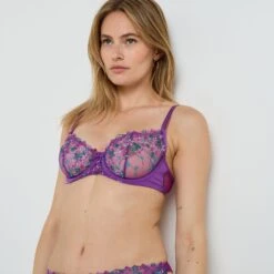 Soutien-gorge Corbeille Bustier HEDWIGE Bleu Multicolore – Tulle Brodé Scintillant & Détails Satin