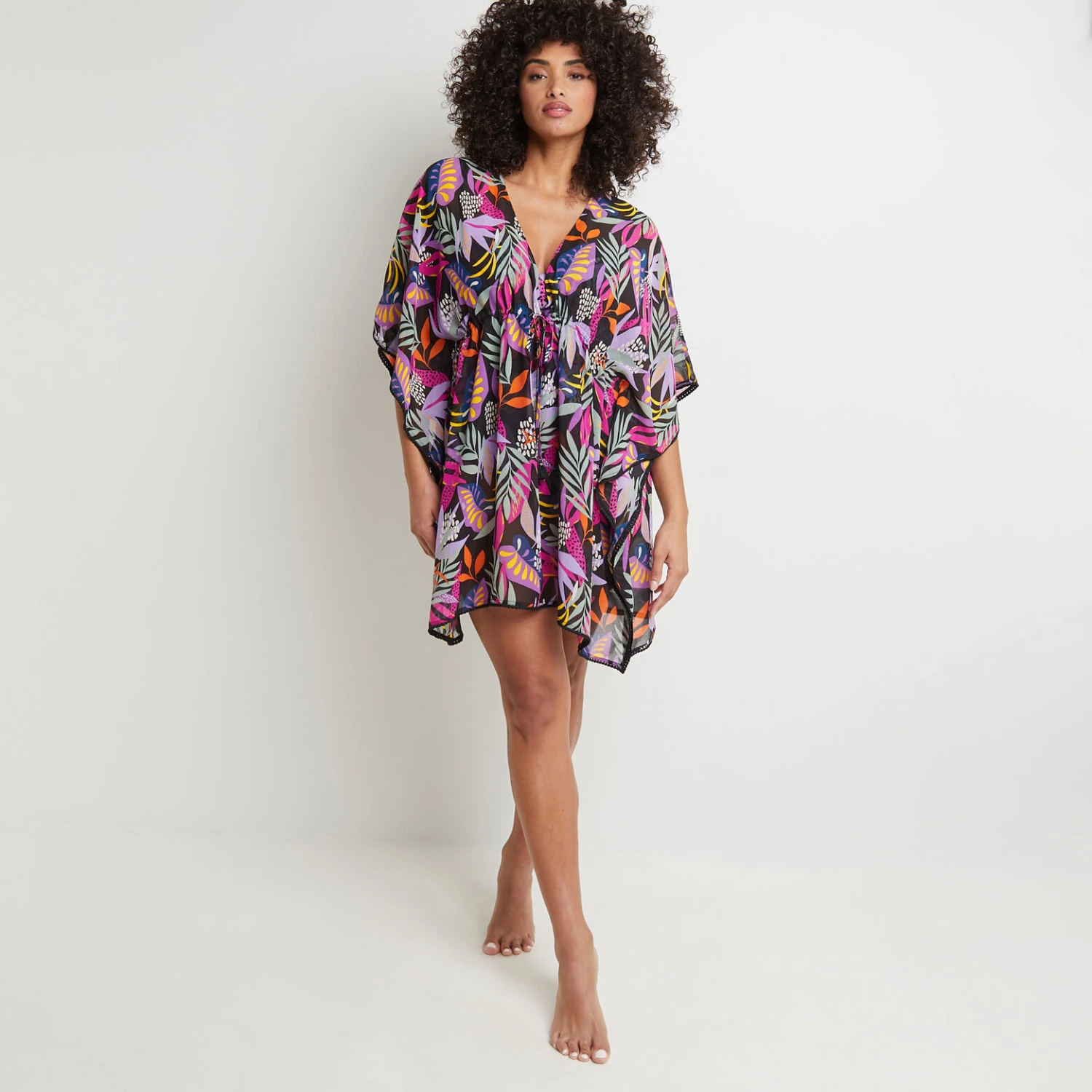 – lien coulissant à nouer taille, finition pompons fantaisie
